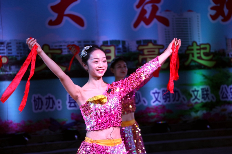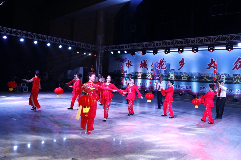 晚7点30分,欢快的开场舞《击鼓茶乡》拉开了活动的序幕,在两个小时的演出中,舞蹈、歌曲、戏曲、快板、走秀、器乐演奏等12个优秀节目轮番上演,演员们精彩、诙谐的演出不时博得现场观众的阵阵掌声和笑声,为观众送上了一道精美的文化大餐。