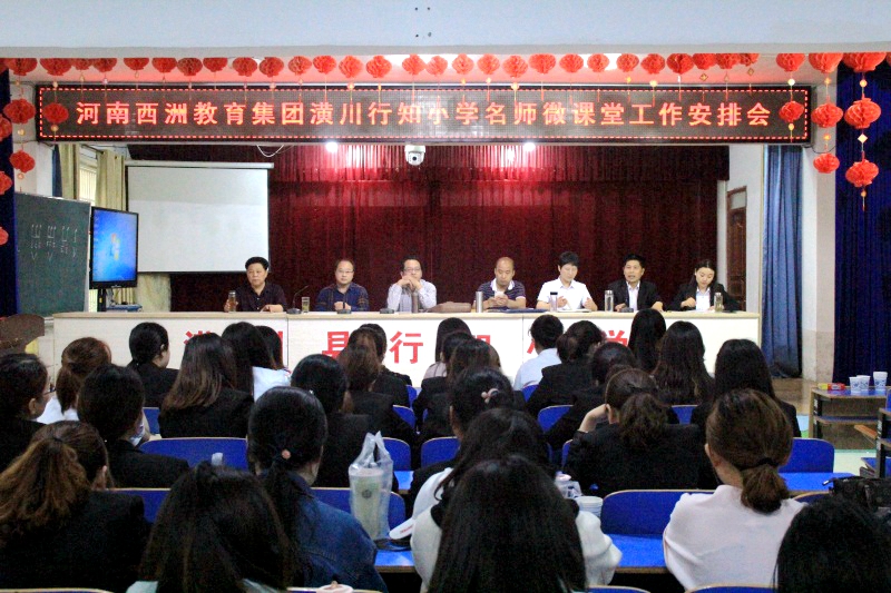 潢川网5月11日讯(方永昶)为创新教学模式,加强课堂教学的有效性,5月10日下午,河南西洲教育集团潢川行知小学召开名师微课堂工作安排会,教研室书记郭加林、教研室副主任王作浩、信阳教育电视二台台长季新河、河南西洲教育集团董事长、总校长彭西洲、河南西洲教育集团副董事长郑霞出席会议,行知小学、阳光小学及兄弟学校一年级教师们参加会议。会议由行知小学教导主任张玉潢主持。
