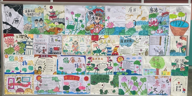 本次手抄报展以班级为单位,三至六年级的8个班学生在美术老师樊金醒老师的号召带领下积极参与,从筹备、动员、评选到展出,每个环节都得到了师生的大力支持。同学们踊跃参与,各显身手,以图绘廉,以文述廉,创作了一幅幅精美的手抄报和绘画作品,表达出自己对廉洁的认知和追求。期间共收到近百份作品,经过评选,共30份优秀作品脱颖而出,同学们的手抄报新颖、务实、精彩。