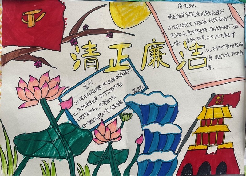 清风拂校园 廉洁润心田——潢川县江集一小开展“清廉学校”手抄报、绘画比赛活动