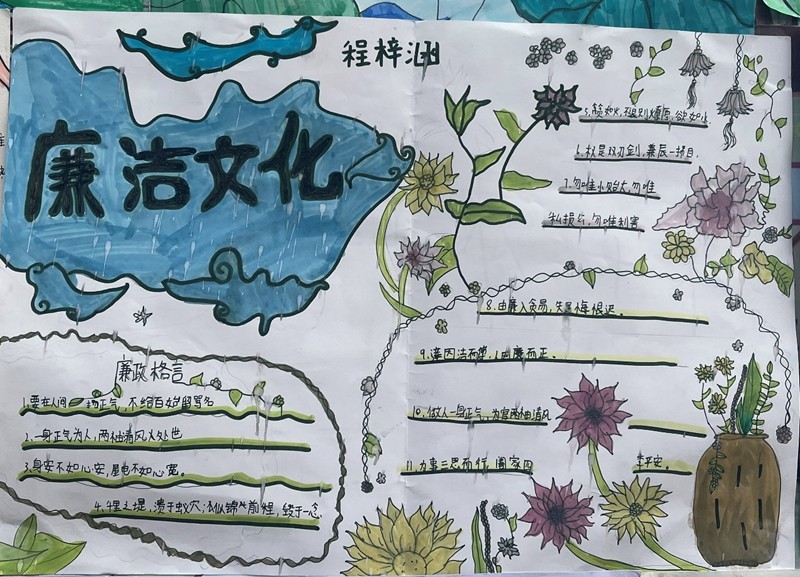 此次“廉洁文化”手抄报展示活动帮助师生重新感知、探索和思考“廉洁”二字,充分激发了全校师生廉洁、立志、好学的兴趣,提高了“廉洁在我心中”的思想意识。今后,江集一小将继续通过讲“廉洁”故事、“廉洁教育”主题班会、国旗下讲话、校园广播等活动形式,将“廉洁文化”的概念融入教育教学中,培育师生“以廉为美,以洁为荣”的价值观,在学校营造“崇廉、奉廉、知廉”的廉洁文化氛围。
