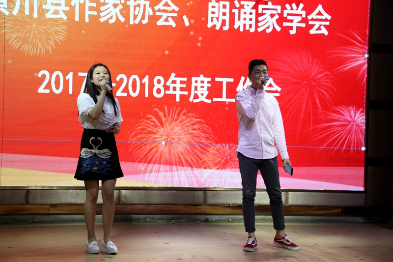 县作家协会和朗诵家学会分别对2017年工作进行总结,同时部署了2018年的工作,并现场公布了协会(学会)财务收支情况报告。高劲松宣读了2017年作协及朗诵家学会受表彰的人员名单,对潘新日、李龙、汪玥等一大批会员现场进行了颁奖。县文联主席李学海作了总结讲话。他首先回顾了协会近几年的发展历程,充分肯定了会员们的创作激情和所取得的成绩。并对广大会员提出几点要求,要求大家树立政治看齐意识、创作精品意识、团结合作意识,服务人民,服务社会,服务地方,多出文艺精品,复兴光州文艺,为实现文化强县的宏伟目标贡献自己应有的力量。李主席讲话结束,精彩的文艺节目表演欢乐开场。最后,在欢快的乐曲声中,到场的县文联、县作协、县朗诵家学会领导和与会成员合影留念。