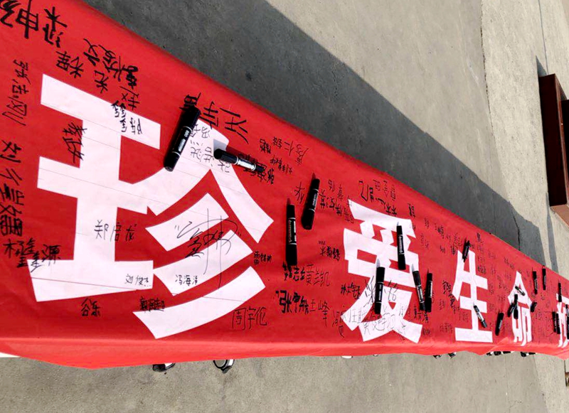 此次活动由冯主任主持,她首先通报了近期发生在邻县的一起令人痛心的溺水事件,用血的事实,警示学生注意防溺水安全,要求同学们时刻警惕,处处小心;接着冯主任带领全体师生集体宣誓:“为了杜绝溺水事故的发生,我们一定自觉做到:不私自下水游泳;不擅自与他人结伴游泳;不在无家长带领的情况下游泳;不在无安全设施、无救护人员的水域玩耍、游泳。我知道生命只有一次,我会远离溺水危险!”宣誓过后,同学们在班主任的带领下,有秩序地在写有“珍爱生命,预防溺水”的横幅上认真签下自己的名字,做出郑重的承诺。随后,学校将写有每个学生姓名的红色条幅悬挂在校门边的醒目位置,时刻提醒广大师生注意防溺水安全。