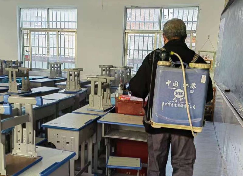 五模拟校园全面消杀。学校为确保校园安全,采用“地毯式”的消杀方式,对学校的教室、楼梯、走廊、垃圾桶、厕所及公共区域进行全面细致的消毒,不遗漏每一个角落,为学校疫情防控工作筑起了一道严实的防疫屏障。