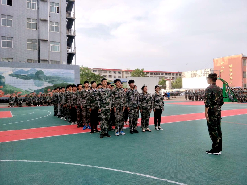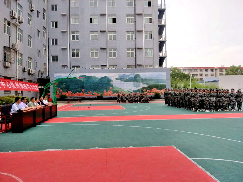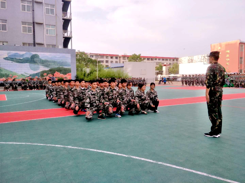 潢川县职教中心举行学生队列训练月大比武