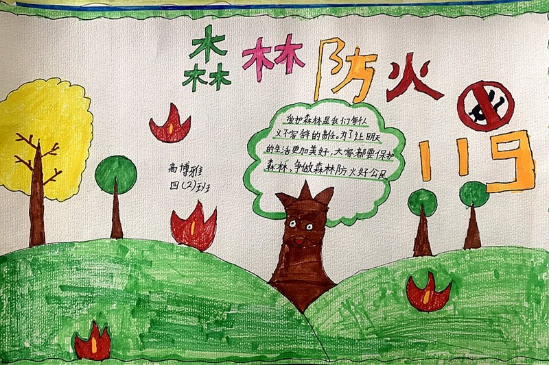 活动中,同学们积极参加,在家长的指导和帮助下,用手中的画笔描绘了森林火灾的可怕和严重危害,画出了对绿色大自然的渴望,表达了自己守护绿色家园的美好愿望。内容丰富,形式多样,最终共评出30余幅优秀作品。
