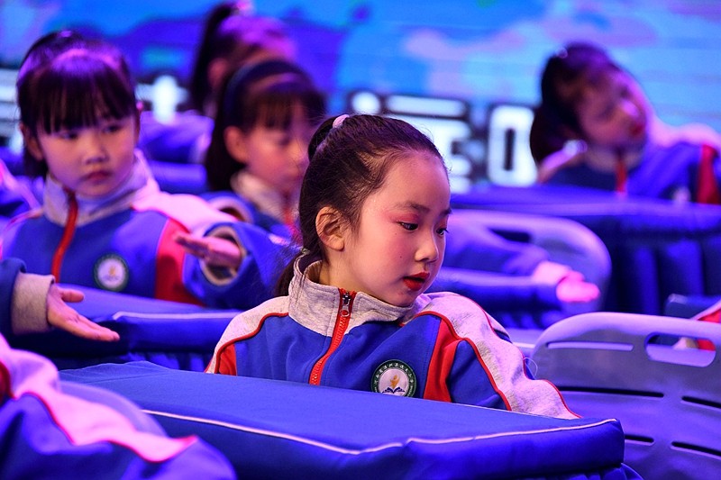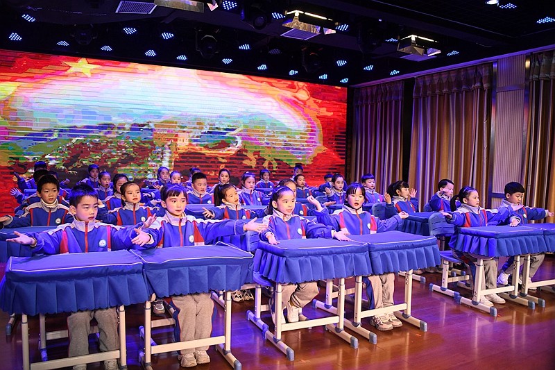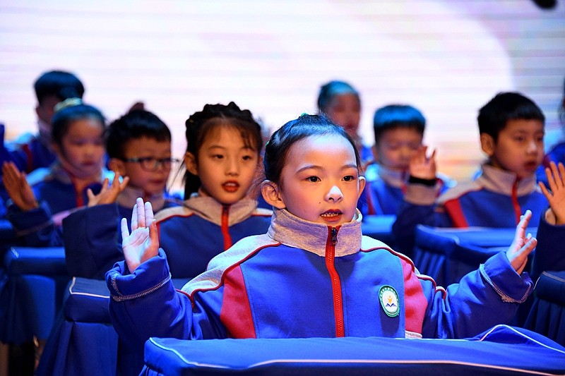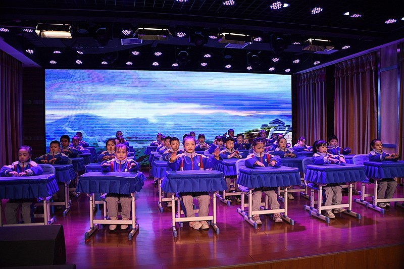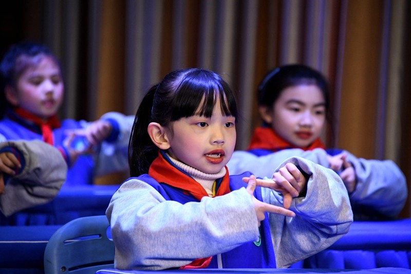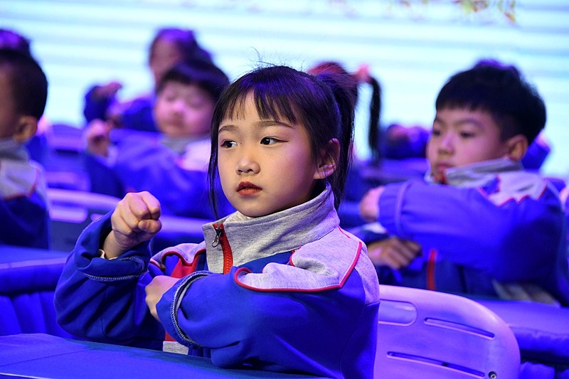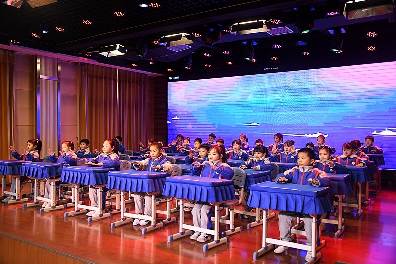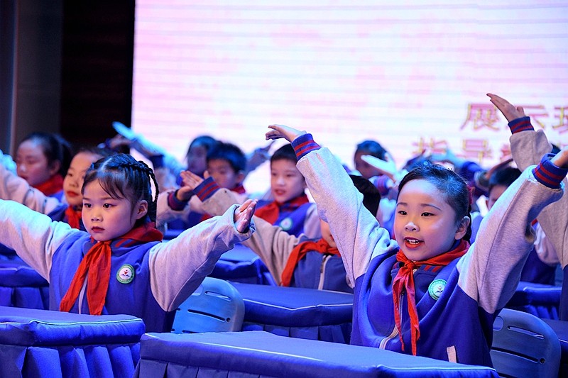 活动伊始,校长周卫发表热情洋溢的致辞,她说,自“双减”政策实施以来,学校根据小学生的特点,创新教育教学形式,充分发挥课堂阵地作用,将课桌作为一种敲击乐器,融入舞蹈动作,结合歌曲教唱进行教学。“课桌舞”不受场地限制,学生坐在课桌前随着音乐就能全身动起来,以缓解学生们的疲劳,打开健康快乐的学习模式,使学生身心得到全面放松,消除学生在课堂静坐、伏案读书、写字时产生的疲劳感,既能锻炼身体,又能提高学习效率,深受学生喜爱,得到家长和社会的一致好评。