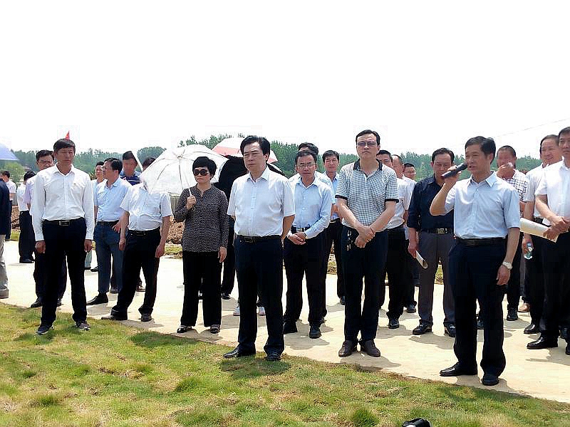 潢川网讯 5月17日上午,县委书记赵亮、县长兰恩民带领部分县处级领导干部和各乡镇党委书记分乘4辆大巴车到江家集镇观摩“中国潢川24节气主题农创园”——千亩“稻虾共作”示范基地。