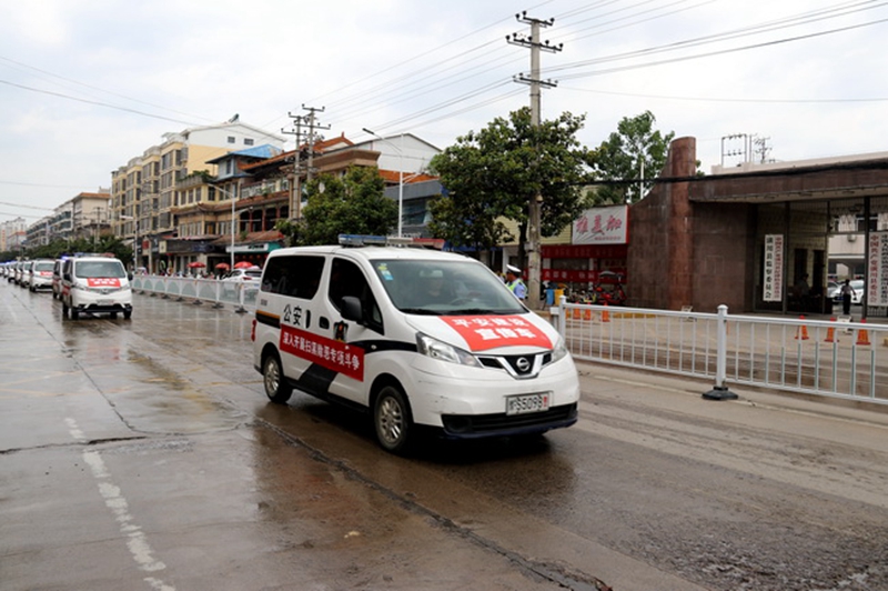 潢川网5月18日讯(黄公轩)2018年5月16日上午,潢川县公安局集中30部宣传车辆,从该局机关办公地点(开发区管委会院内)出发,沿城区主干道巡逻绕行,流动开展打击盗抢诈骗犯罪集中宣传活动,向全县广大人民群众表明公安机关严厉打击盗窃诈骗犯罪的信心和决心,达到了预期目的,收到了良好的社会效果。