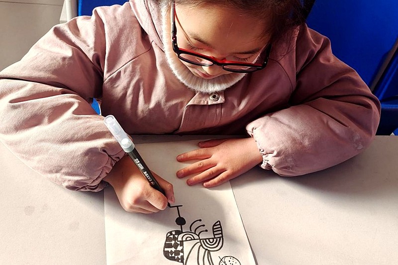 活动针对高中低年级学生年龄的特点分设了《点线面》、《快乐成长》和《中国传统乐器》三节课。课上,同学们认真听课,不时跟着老师做动作;美术课上更是聚精会神,深怕错过老师的讲课内容。