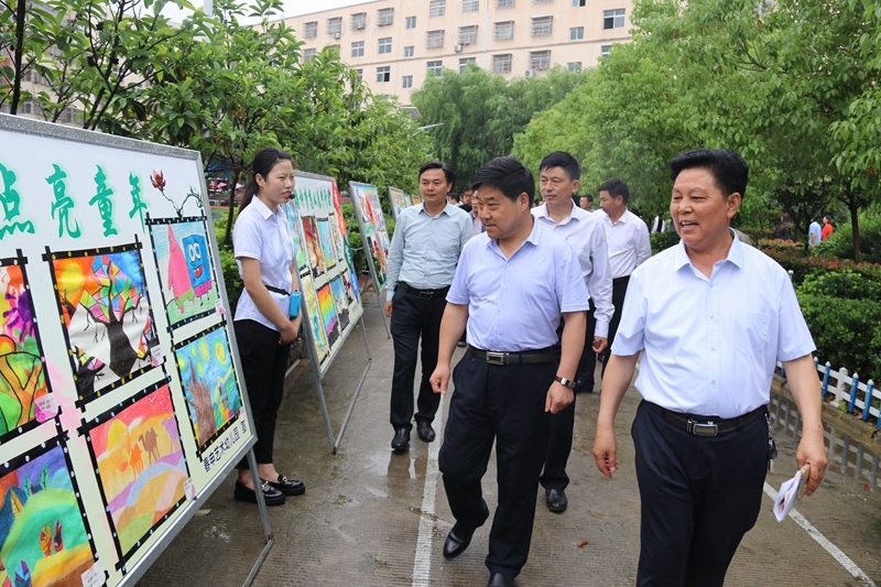 第十二届校园文化艺术节开幕,与会领导及家长代表观展