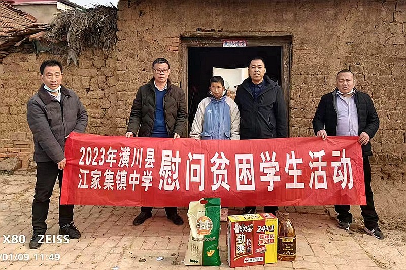 帮扶暖人心——潢川县江集中学开展走访慰问贫困户、贫困生活动