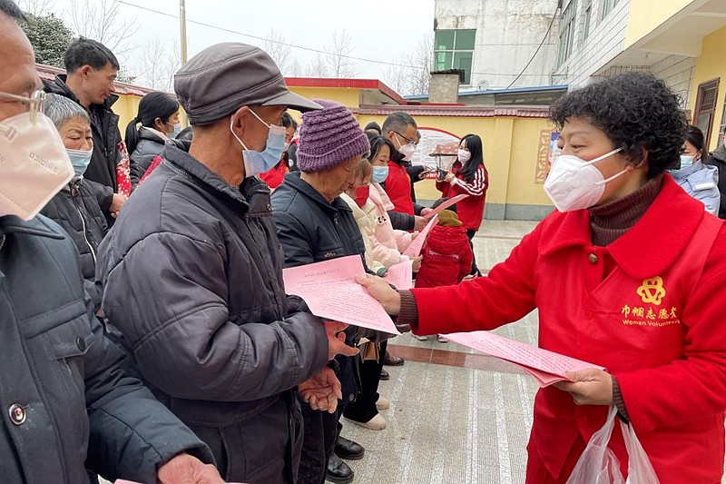 潢川网讯 春节将临,节日气氛渐浓,为切实保障居民人身、财产安全和公共安全,改善空气质量,防止环境污染,提高人民群众生产生活居住环境质量。1月10日,潢川县妇联按照县安全生产工作安排,组织巾帼志愿者走进包联白店乡白店村,开展春节期间禁售禁放烟花爆竹集中宣传活动。