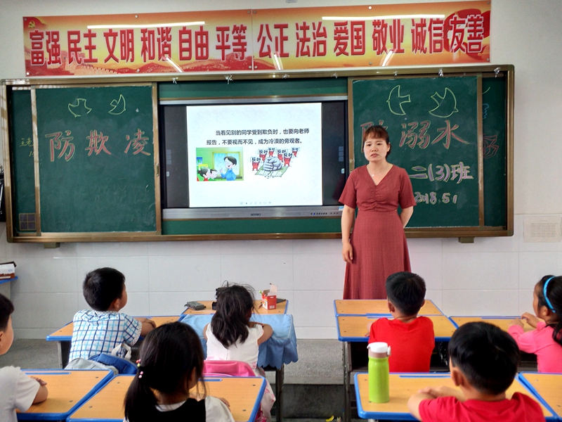 潢川一小开展“预防校园欺凌”“防溺水”安全教育主题班会