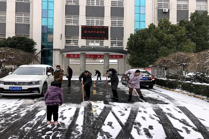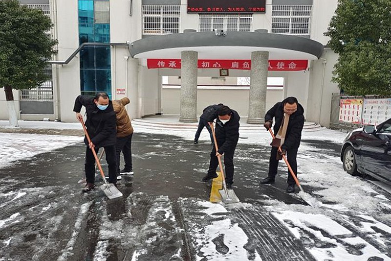 寒冬初雪 情暖校园——潢川四中开展清扫道路积雪活动