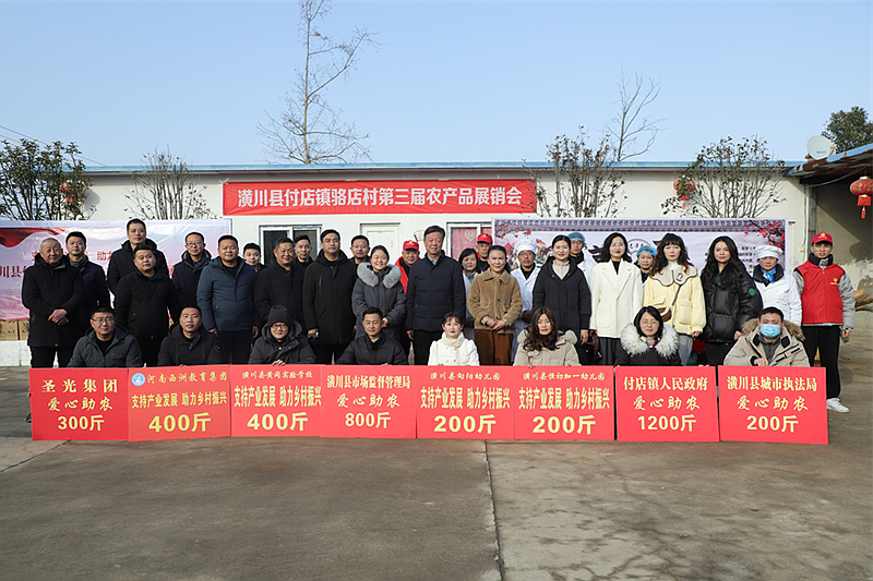 潢川网讯 为支持产业发展,助力乡村振兴。1月15日下午,潢川县第三届“支持产业发展 助力乡村振兴”农产品展销会在付店镇骆店村举行。