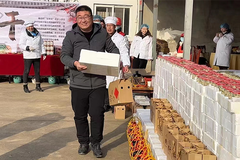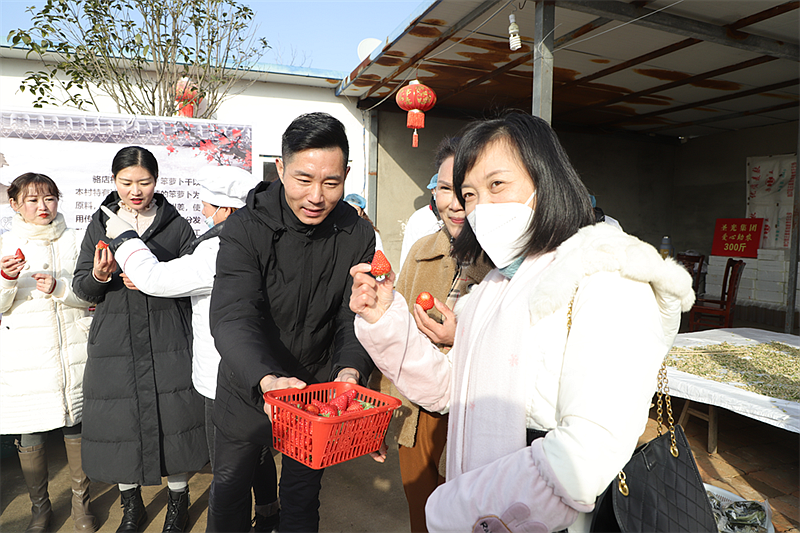 “在去年的基础上,今年我们整合本村手工糍粑、糯米酒、草莓等产品,口感也很好。”付店镇骆店村香洼家庭农场负责人王志刚介绍。“今年的产品增加了品种,选择也多了,过年在外的亲戚回来,外出时带上几样,不仅携带方便,还能品尝到家乡的味道。”潢川县教体局认购代表李士华表示。