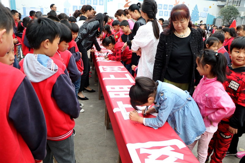 接着,大队长何昕怡带领全体学生进行宣誓,随后,同学们在签名横幅上郑重地签上了自己的名字。