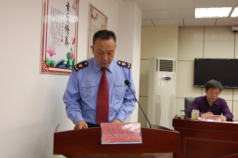 随后,廉政工作先进个人代表市场股梁志刚做了大会发言;重要岗位代表经检队队长龚建军、江集分局负责人陈万宝、注册股股长刘承楠做了大会表态;最后,县工商质监局党组书记、局长叶红兵以《狠抓以案促改 做务实清廉干部》为题为大家上了一堂专题党课。
