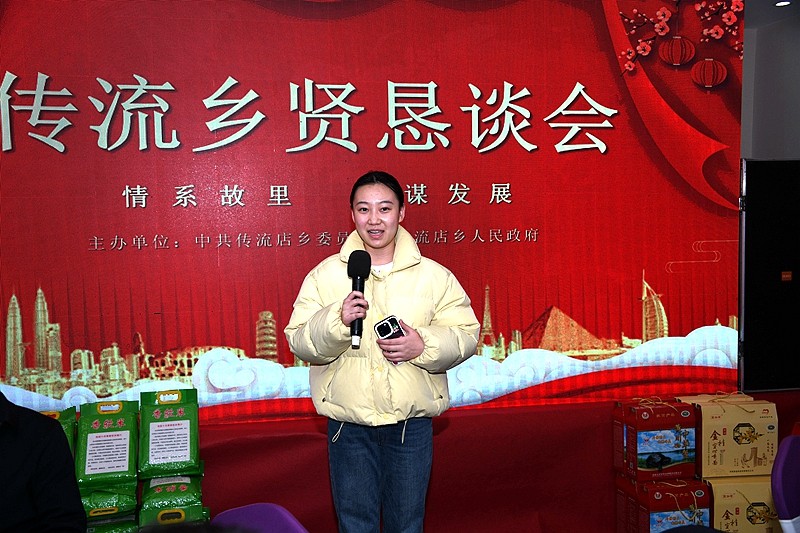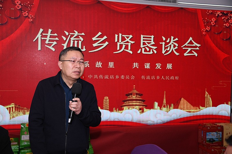 晚会结束后,乡党委政府组织召开了乡贤恳谈会,话乡音叙乡情,畅谈家乡变化,紧抓合作机遇,共谋家乡发展。县人大副主任李浩发表了热情洋溢的讲话。乡党委书记吴宗徽主持恳谈会。乡长吴弋春介绍了家乡一年来的发展成果,谋划了新一年工作。吴宗徽根据乡情实际,结合利好政策,向乡贤介绍了传流店乡作为豫东南高新技术产业开发区的拓展区和潢川县后花园,未来发展的前景,以及部分乡贤创业发展情况。