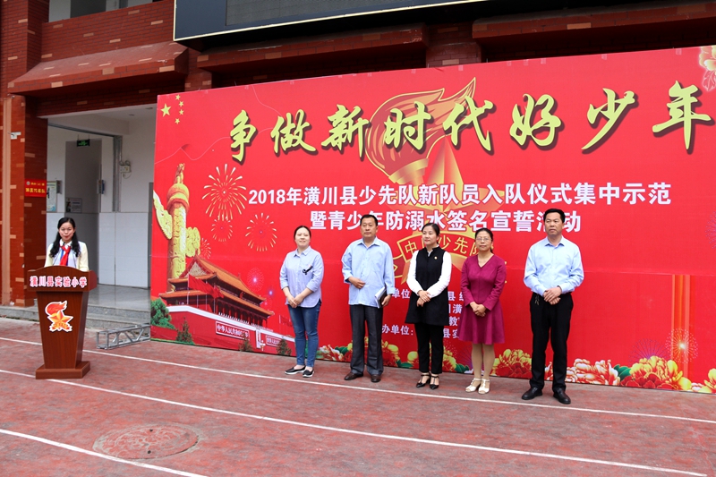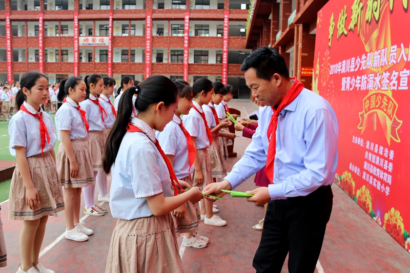 潢川县实验小学举行庆六一新队员入队仪式暨青少年防溺水签名宣誓活动