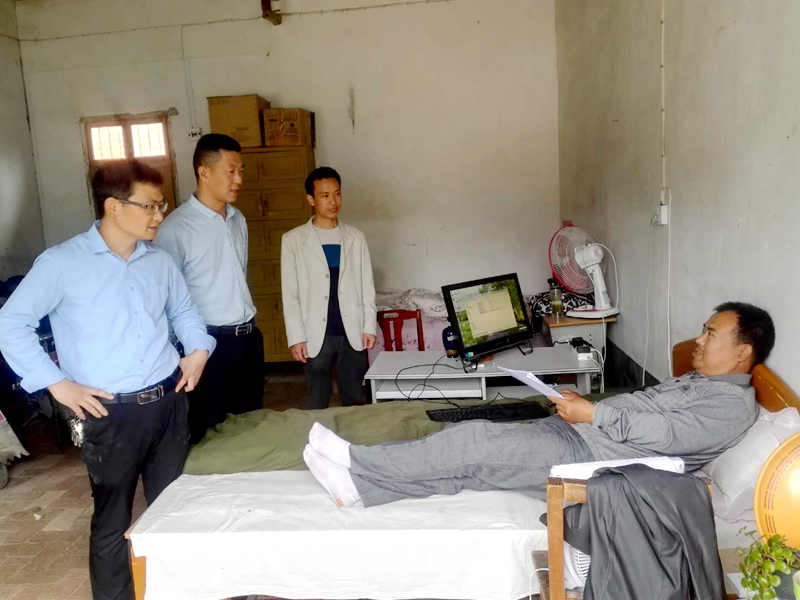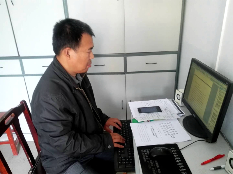 2017年为迎接教育均衡县验收工作,谈隆重同志日以继夜地工作,2017年2月开学至验收以来没有休息一个节假日,由于腰间盘曾做过手术,不能久坐,但大量的档案整理工作需要在电脑上完成,坐累了就站着,疼痛的站着也困难,于是,电脑搬到宿舍躺在床上继续工作。