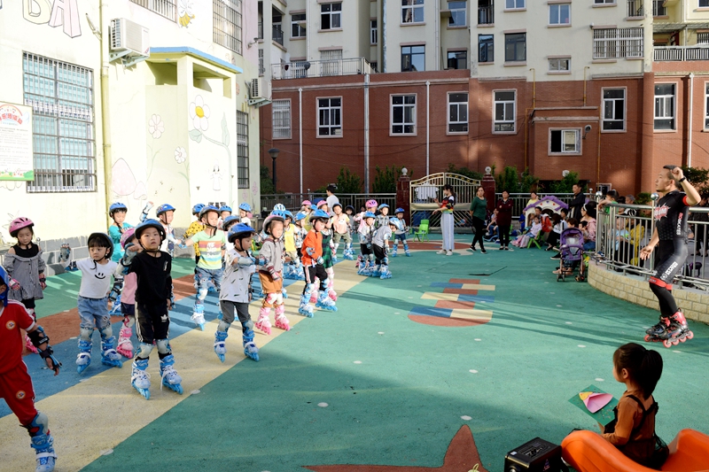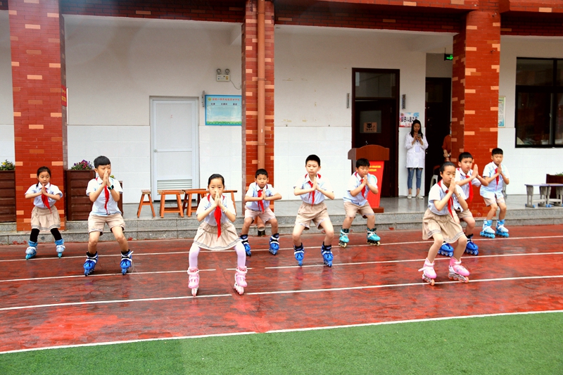 活动中,学生们在身着专业服装脚踩轮滑鞋的教练帮助下,戴上了护具穿上了轮滑鞋,跟着教练认真学习基本动作并讲解了轮滑安全知识。做起了精彩的轮滑舞蹈和欢乐的轮滑游戏。笑声始终萦绕着校园。
