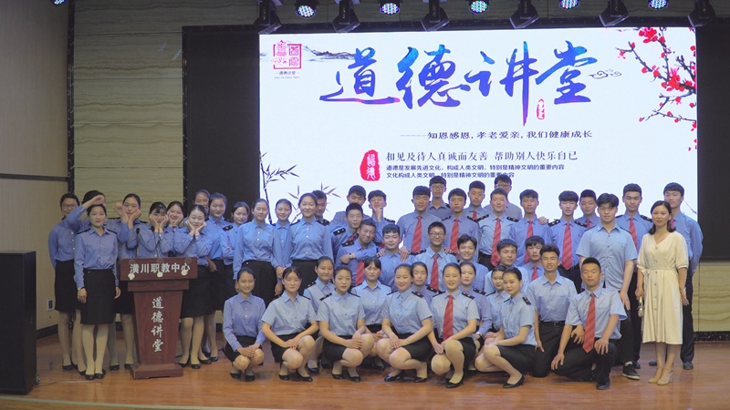 潢川网5月26日讯(罗雪莹)5月24日下午,潢川县职教中心2018年第二期道德讲堂在阶梯教室浓情开讲,本次道德讲堂活动的主题是“孝老爱亲”,旨在进一步弘扬中华中华民族孝老、爱老、助老、敬老传统美德,推动学生道德建设的发展,通过以身边的人讲身边的事,身边的事教育身边的人的形式,培养学生孝老爱亲的道德品质。本期道德讲堂由我校学生科负责,2017级高铁2班主办,副校长余先闯等校领导和部分班主任到场参加了本次活动,该校高铁5个班学生共计300多人共同聆听了此次讲堂。