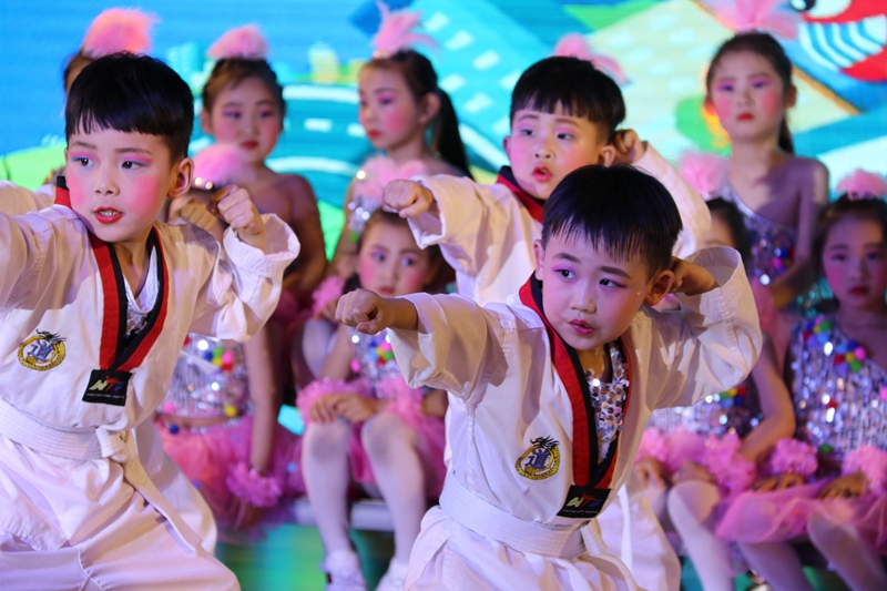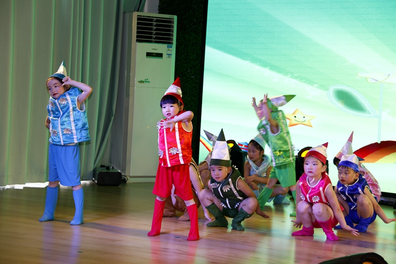 接着精心准备的文艺节目精彩纷呈轮番上阵。武术《中华小英雄》小兵操《红色行动》体现出少儿蓬勃、健康向上的中国精神,具有时尚动感气息的节目《北大有嘻哈》《we are one》,孩子们通过不同的器材舞出活力和自信。轮滑《小飞将》和《书香茶韵》《好绘本漂流记》通过运动、茶艺、绘本等不同形式体现了幼儿园丰富多彩的特色课程,开展示素质教育的成果。语言类节目《小候鸟的梦》《爸比爸比》,表达了留守儿童对爱的渴望,对亲情的期盼。《七彩画笔》《蜗牛的心愿》《见行未来》让我们看到一个成长在阳光下的新时代幼儿的理想抱负,而一群呼吁“生态平衡倡导建设美丽中国”《绿色能量娃》则让我们感受到孩子们的低碳情怀。教师组才艺组合《花开有声》、《伊人俏》《芳华》通过乐器、插花、太极、瑜伽、中国舞等形式展现出雄厚的师资力量和过硬的专业素养,老师们用童心演绎美好,用多种形式的节目传递心中的喜悦引得阵阵喝彩。