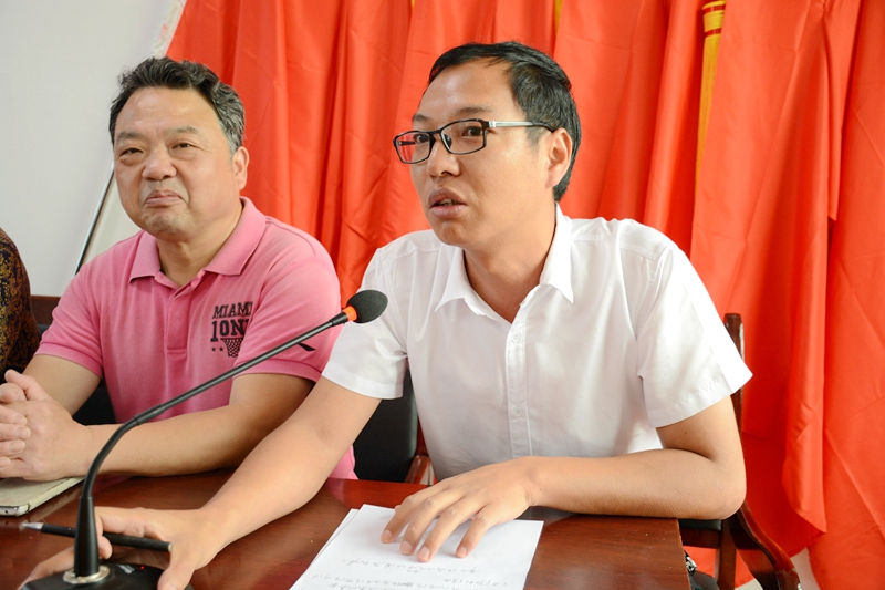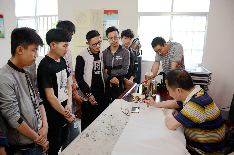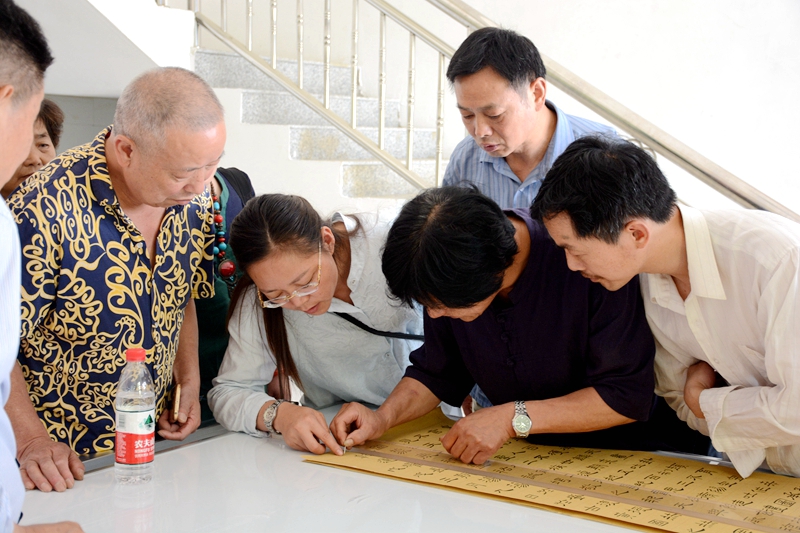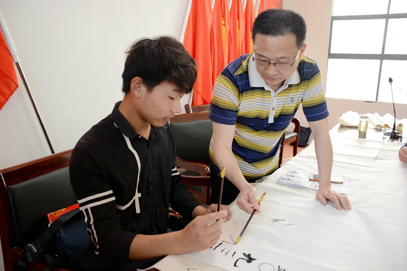 潢川网5月28日讯 为普及书法艺术知识,传承中华优秀传统文化,发挥文艺志愿扶贫服务作用,在第五个中国文艺志愿者服务日到来之际,潢川县文联积极响应中国文联和省市文联集中开展“到人民中去”文艺志愿主题服务活动号召,于5月27日组织县书法家协会及其双柳树镇书法分会、双柳树镇文化中心,走进双柳树镇郑岗村开展书法公益培训文艺志愿扶贫服务活动。县文联主席李学海、原副主席王国新,县书法家协会主席熊舞,副主席吴蕴华、王建军,副秘书长杨振宏、王刚,省书法家协会会员张俊辉、冯伟等参加培训活动。双柳树镇书法分会会员、村书法爱好者和双柳高中爱好书法的部分学生听取授课,接受现场培训。