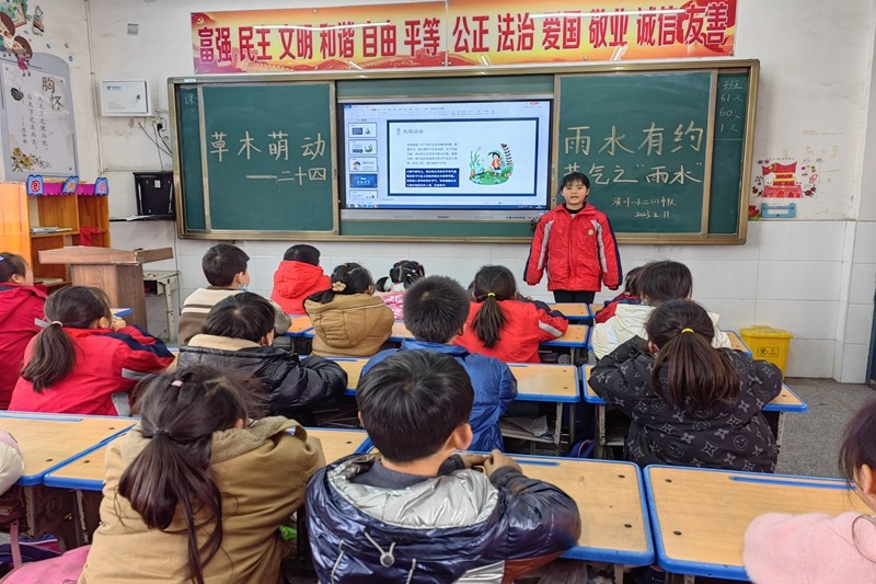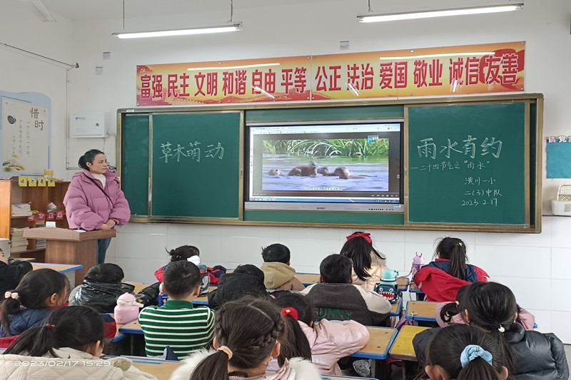 2月17日下午的主题班会课,中低年级部的中队辅员围绕雨水的由来、雨水的习俗、雨水三候、雨水诗词赏析等内容,引导队员们更深层次的了解雨水节气。在活动中,有些中队的少先队员们还结合了学校的经典诵读课程,即兴开展了以“雨水”为主题的诗词诵读活动。