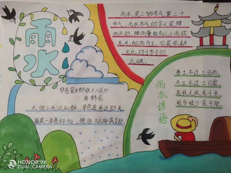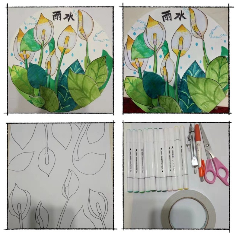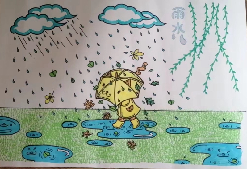 剪一剪、粘一粘、贴一贴、画一画,队员们用手中的画笔展示着雨水时节的美,将自己对雨水节气的理解跃然纸上,描绘出最美的“雨水”。