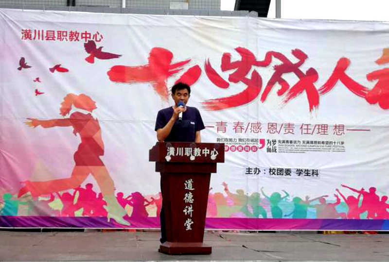 潢川网5月29日讯(罗雪莹)十八而志,筑梦青春;十八岁,意味着正式成年,更意味着一份责任与担当。5月28日下午,潢川县职教中心在该校操场举行了主题为“青春.成长·感恩·责任”的十八岁成人礼仪式活动。副校长兰福海、校工会主席汪志术,校办公室主任石泰山、纪检室书记余金成、学生科科长刘胜利、校团委书记刘洋等校领导以及100余名家长代表和全体学生及班主任老师现场观看了此次活动。