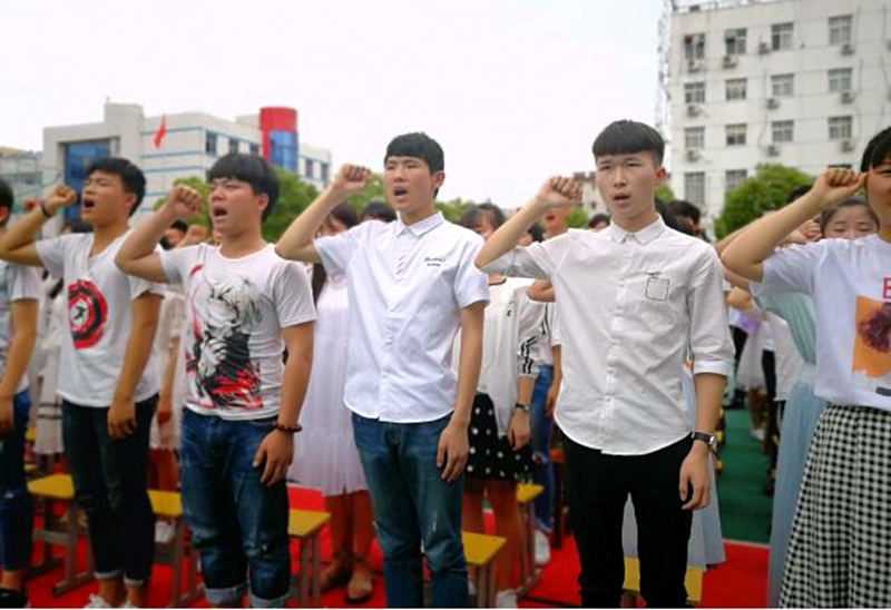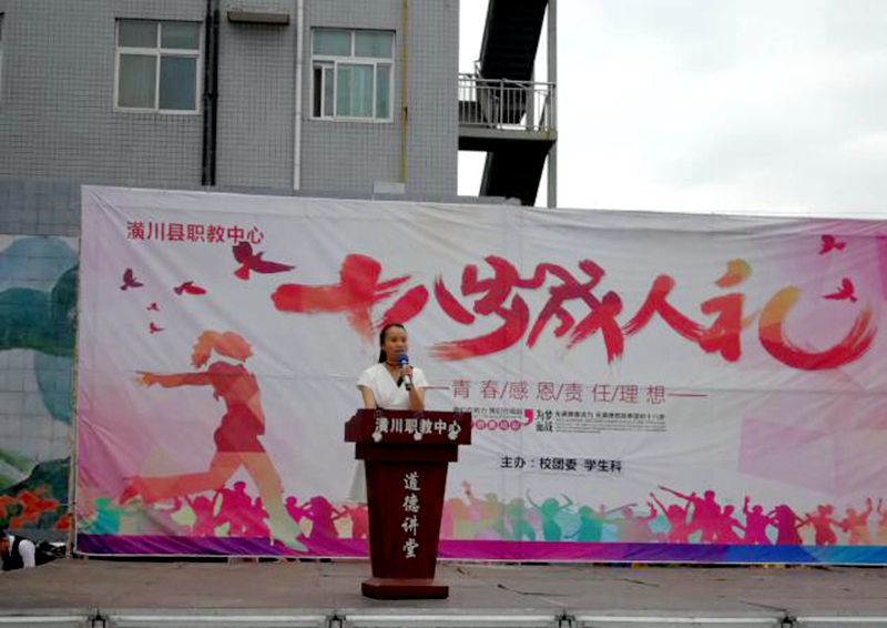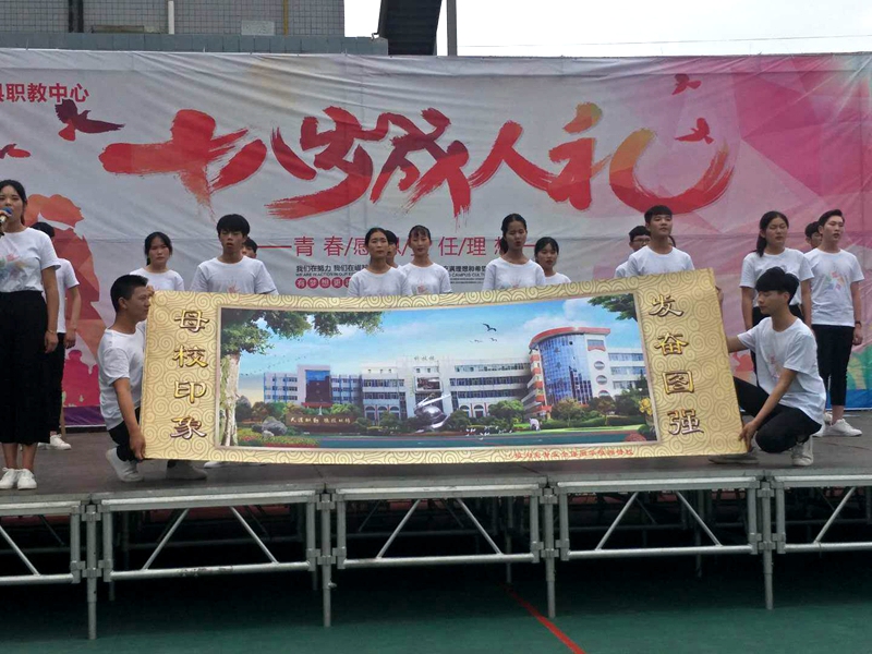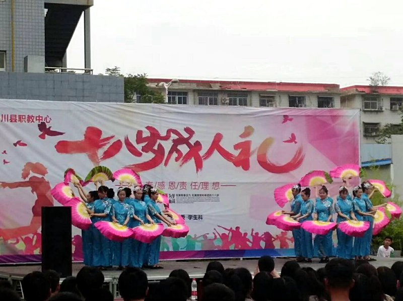 首先由该校副校长兰福海同志致辞,勉励同学们珍惜青春韶华,勇担历史重任,培养执着的信念、优良的品德、丰富的知识,勇做走在时代前列的奋进者、开拓者、奉献者,在激扬青春、奉献社会进程中,书写无愧于时代的壮丽篇章。在2016级淘宝(1)班通耀龙带领下146名学子进行了《中华人民共和国宪法》成人礼宣誓。预示这群18岁的青年将从此承担起宪法赋予的全部责任,并由此翻开人生成长的崭新篇章。涂抗抗老师和2016级高铁一班孙悦家长张成敏分别作为教师代表和家长代表进行了发言,她们与全体学生分享了对“成人”的理解,为孩子们送去了真挚的祝福与叮咛。学校的祝福、家长的见证、老师的叮咛令学生倍感振奋。2016级淘宝(1)班的张喜才代表学生发言,他表示十八岁充满理想与激情,十八岁是走向成熟的开始,他们将铭记成人礼这一神圣时刻,珍惜光阴,不断磨砺自己,不辜负师长的期望。活动中,该校高铁专业的学生用自己在擅长的礼仪、茶艺表演,淘宝专业的学生利用自己学到的网页设计专长表演了舞蹈《鼓舞茶香》、音画组合《母校印象》、《高铁礼仪展示》茶艺《水墨兰亭,山水信阳红》等6个精彩的节目,展现职专学子特有才艺的同时也表达了他们对母校的感恩之情。