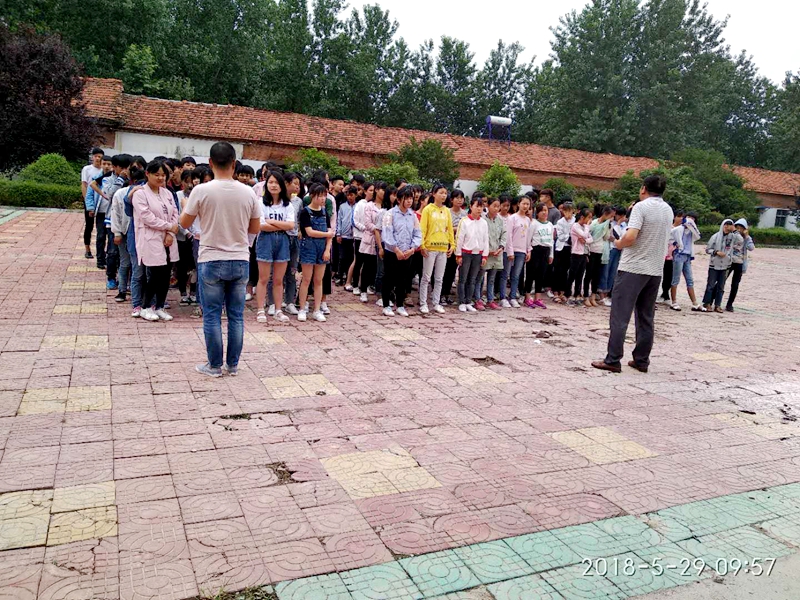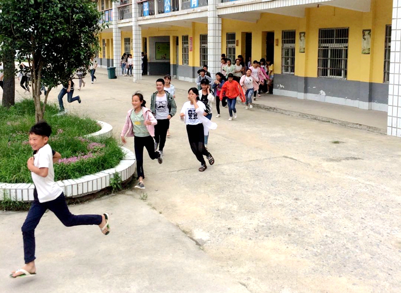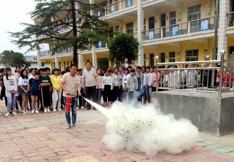 五、5月29日上午,开展了全校应急疏散和消防演练活动。根据学校制定的《安全应急疏散演练活动方案》,随着紧急的警报声,负责演练的全体领导老师,立即各就各位,各司其职,应急疏散演练活动紧张有序的开展,每个班级由班主任维持秩序、应急疏导,东西楼梯都有值班领导从旁指挥引导,学生听从指挥、行动迅捷,没有惊慌失措的喊叫,也没有一人摔倒。整个应急疏散演练在学校整体指挥下快速完成。整个过程做到了迅速、安全、有序。随后,学校政教处唐主任亲自向全体师生介绍了消防安全知识、现场讲解了灭火器的使用方法,并按讲解逐步动手实践演示,正确示范了使用灭火器灭火的方法步骤和注意事项。学生经过这次的演练,进一步提高了处理突发事件的应变能力,同时也提高了全体师生的安全防范意识!