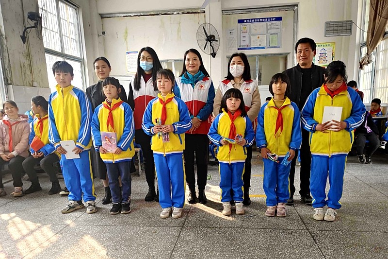 潢川县红十字会到伞陂古城小学开展红十字会爱心捐赠活动