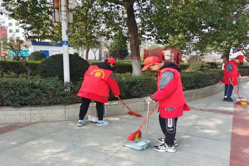 活动中,学生志愿者们带着抹布、扫帚、垃圾桶等工具,来到了公园广场打扫卫生。志愿者们或是细心的打扫地面,或是认真捡拾垃圾,或是捡拾树枝 ,还主动陪公园老人聊天、与小朋友交流、身穿红马甲的同学们不怕脏、不怕累,充分展现了新时代“雷锋少年”的风采,成为了公园最亮丽的一道风景线,带着春日的喜悦,弘扬着“奉献、友爱、互助、进步”的志愿精神。