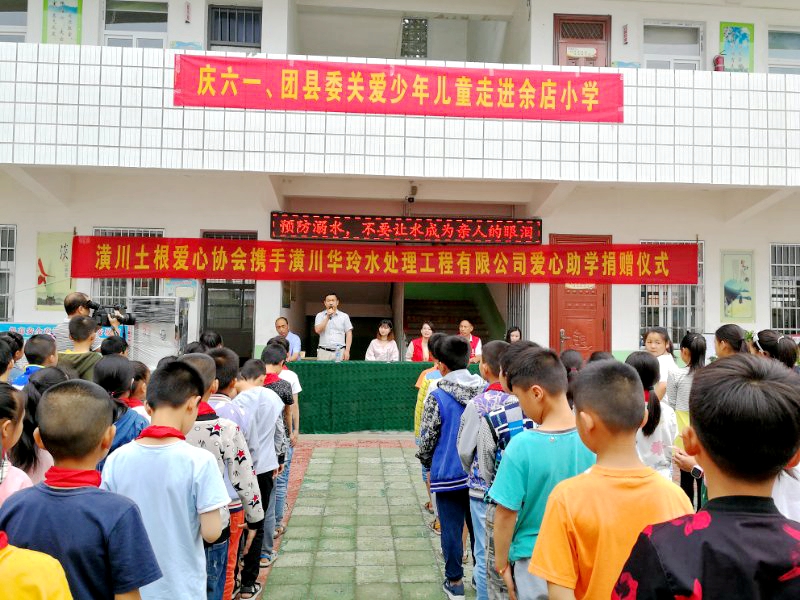 潢川网6月1日讯(汪凯雯)送去五月的芬芳,迎来六月的朝阳,孩子们的心像怒放的花朵,荡起一片欢乐的海洋!值此“六一儿童节”来临之际,潢川团县委、土根爱心协会及华玲水处理工程有限公司走进魏岗乡余店小学举行