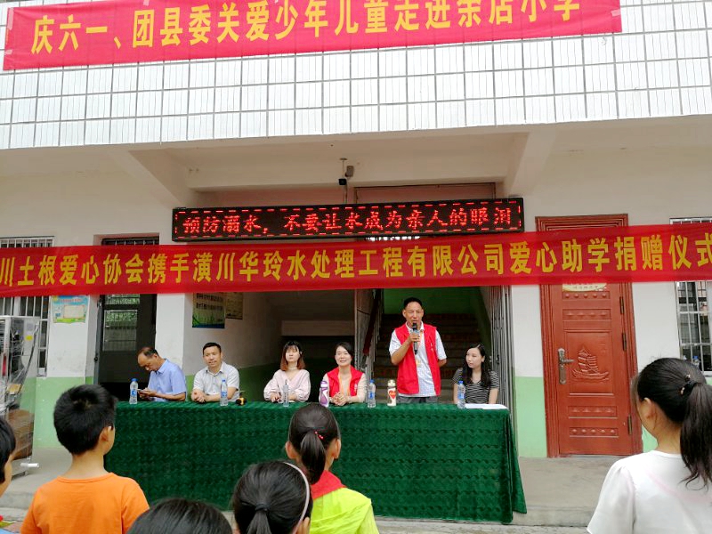 活动中爱心人士向余店小学全体学生每人捐赠了一个塑料水杯,并向该校捐赠了一台价值8000元的饮用水净水机。金钱有价,爱心无价,学生们拿着捐赠物品个个喜笑颜开。捐赠会上,首先由团县委领导吕凌元同志讲话,表达了对孩子们的关心和殷切期盼,鼓励孩子们用心读书,积极向上,争做合格的社会主义接班人。然后由爱心协会代表发言,表达了对同学们的希望与祝福,希望同学学会感恩,学会奉献,将爱心的火种永远传递下去。随后,余店小学学生代表进行了感恩发言,表达了努力学习,要用实际行动来回报上级领导及社会爱心人士的真挚感情。最后,魏岗乡中心校赵国成校长对此次活动进行总结,表达了对县团委领导、潢川土根爱心协会以及潢川华玲水处理工程有限公司的衷心感谢。