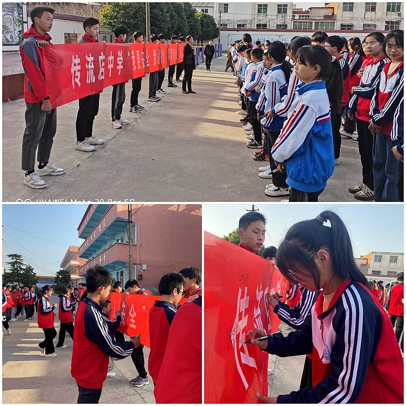 潢川县传流店中学举行安全教育月主题升旗仪式暨签名活动