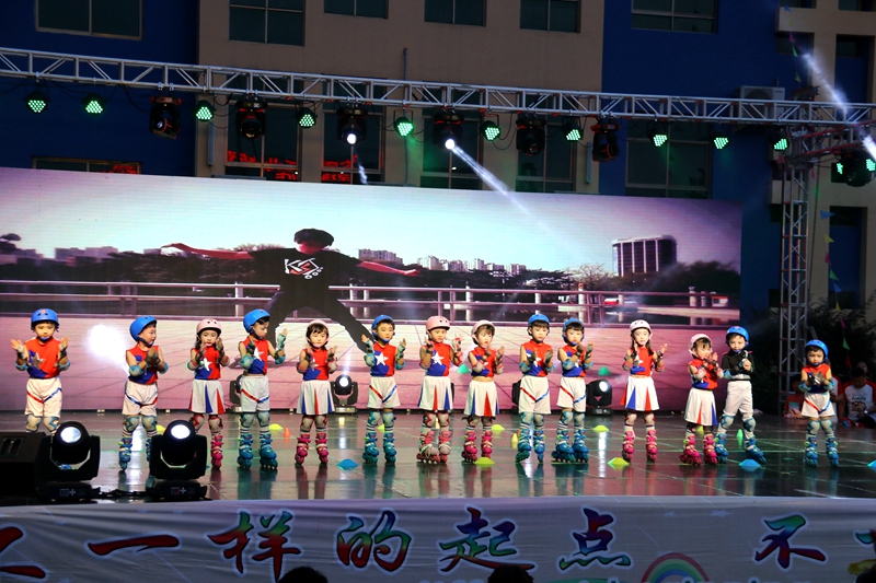 “不一样的起点 不一样的人生”,幼儿园的每一个孩子都是舞台上的主角。晚会跟随着一群《轮滑小健将》们拉开了序幕。欢快的节奏瞬间把大家带入了喜庆的节日氛围中。整台晚会形式多样,每个节目都精彩纷呈:有活力四射的《潮爷》;幼儿体能椅子操《跳动的节奏》;有师生以及我们的家长朋友同台表演的《黑猫警长》《葫芦娃》《我还有点小糊涂》;有心灵手巧的老师们亲手制作的《创意时装秀》,有迪斯尼经典动画英语情景剧《长发公主》;更有我园教师舞蹈队带来的唯美舞蹈《风筝误》……每个节目都展现了孩子们的童真、童趣、自信和风采,博得了在场家长们此起彼伏的热烈掌声,活动在感人的大班配乐诗朗诵《爱与梦想》中画上了圆满的句号。