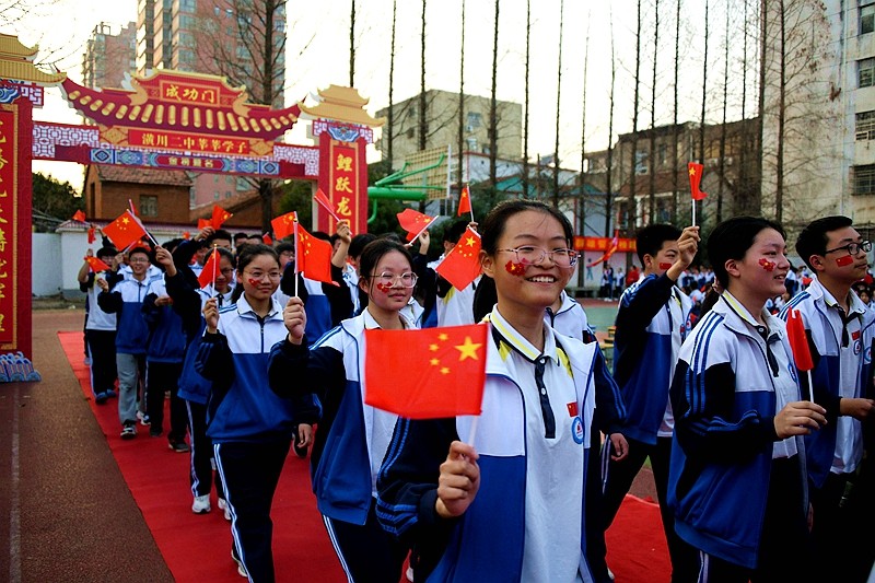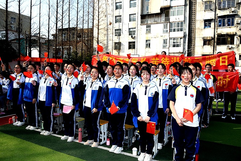 鲜衣怒马少年时,不负韶华行且知。同一个舞台,同一个梦想,各班旗手从领导手中接过象征使命和责任的“百日冲刺”战旗,带领本班同学以青春的名义向母校宣誓。鲜红的标语振奋人心,嘹亮的口号响彻云霄。
