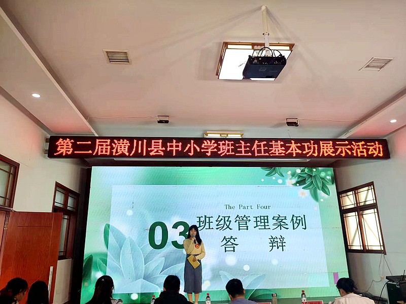 2023年3月9日,熊文智老师代表老城中心校参加第二届潢川县中小学班主任基本功展示活动。熊文智老师向评委们分享了自己的育人故事,用身边发生的学生典型案例展开了生动的讲解;在带班育人方略环节阐述治班理念以及针对案例进行具体分析。答辩环节中,分享自己的教育教学理念与经验,对情景中的事件进行归因、剖析与处理策略阐释;主题班会设计这一环节,通过展现班级活动,让心理健康教育与课堂融合,值得回想深思;熊老师的才艺展示是手工折纸,与学生共同完成,体现了五育并举中的“美育”,真正做到课堂与实践相结合,走近学生并感受创作的美。