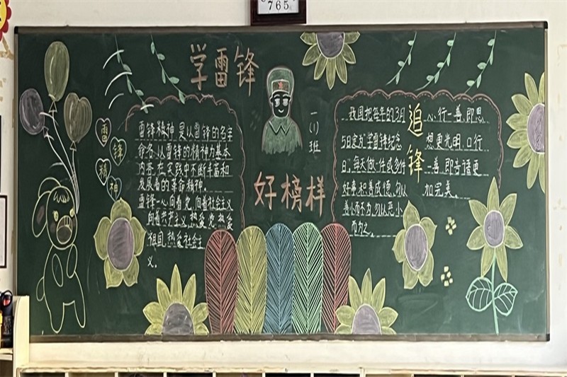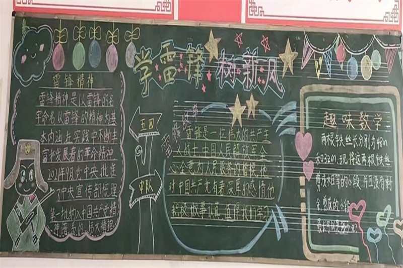 同时,为在校园中形成“人人学雷锋、天天学雷锋、时时有雷锋”的良好氛围,促进学生良好行为习惯的形成,各班级学生还以“学雷锋”为主题,精心设计,通过绘画、摘录等各种形式,将自己对雷锋精神的感悟浓缩在黑板报、手抄报中,对雷锋事迹、雷锋精神进行全方位报道:有展现雷锋的形象,赞扬雷锋的“钉子精神”;有歌颂雷锋“全心全意为人民服务”的高尚品质;有展示对雷锋精神的感悟和理解……