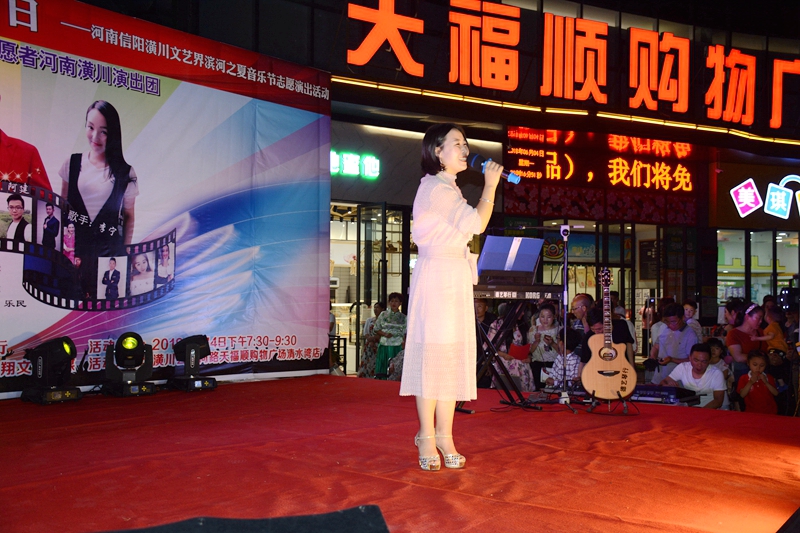 潢川网6月5日讯(李斌)6月4日晚,由潢川县文学艺术界联合会主办,县音乐舞蹈家协会、德艺琴行承办,天福顺购物广场、潢川网等协办的滨河之夏音乐节第二场文艺志愿服务主题演出活动在清水湾天福顺购物广场举行。县委宣传部副部长李强,县文联主席李学海,县纪委监察委第四派驻组组长彭坤,县文联副主任科员王国新,潢川东方物流港项目董事长汪成江,天福顺商贸有限公司董事长王素华,潢川网站长李健等参加了本次活动。