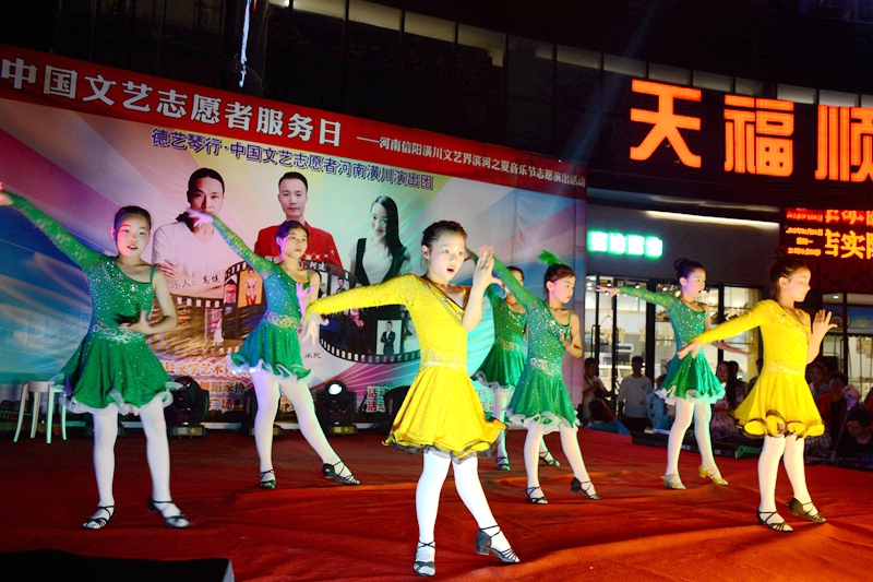 演出活动在开场舞《艺杨风采》中拉开了序幕。随后,德艺琴行三位知名音乐艺人阿建、高健、李宁老师先后表演乐器伴唱《鸿雁》、《敖包相会》、《梅花》,男声独唱《我们不一样》、古筝《高山流水》女声独唱《在希望的田野上》、《你不来我不老》、《纳西情歌》、《白发亲娘》乐器伴《萨克斯独奏》,女单舞《茉莉花》、交谊舞《三步踩A4舞》、拽步舞《我的蒙古马》、流行舞《最强节奏》、拉丁舞《青少年伦巴》、古典舞《风筝误》、旗袍秀《江南雨》等各式各样的舞蹈,传播着潢川文艺志愿者的真善美和他们对多彩生活的热爱。活动在大合唱《感恩的心》中圆满落下帷幕。最后,观看演出的领导与所有演出人员合影留念。
