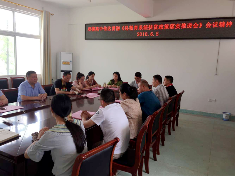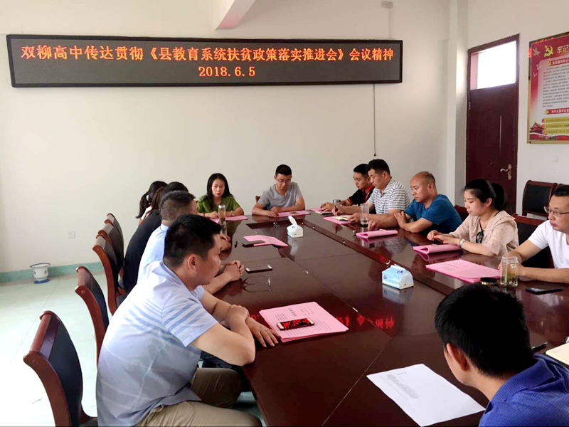 潢川县双柳高中传达贯彻《县教育系统扶贫政策落实推进会》会议精神