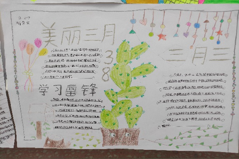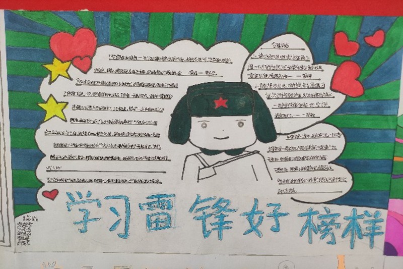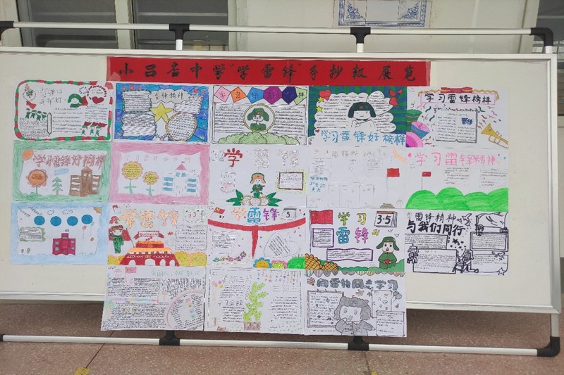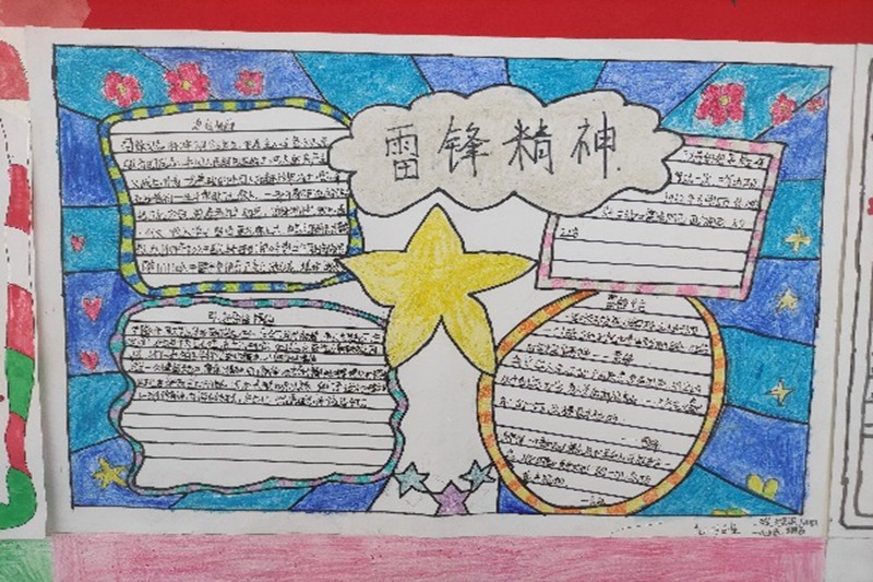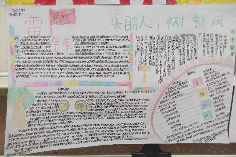 按照活动部署,学校向各班发布了手抄报评比通知,要求各班以“弘扬雷锋精神 争做时代新人”为主题,出一期介绍雷锋事迹,弘扬雷锋精神,营造学习氛围,体现中学生风采的手抄报设计。各班积极参与,以丰富多彩、图文并茂的形式在手抄报上展示了学雷锋、讲文明等宣传内容。同学们把对雷锋的崇敬和怀念之情深深融入到手抄报创作之中。手抄报追述了雷锋同志的光辉事迹,赞扬了他的“钉子”精神,歌颂了他全心全意为人民服务的品质。各班设计的板报新颖独特,既弘扬了雷锋精神,又赋予其时代特征。