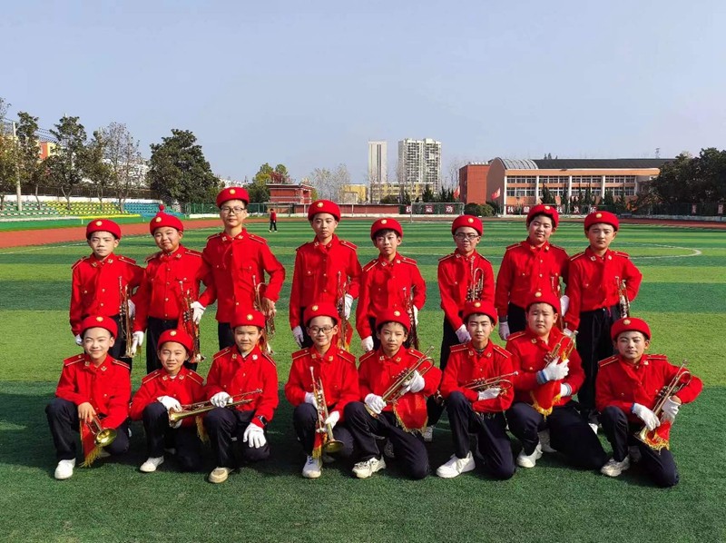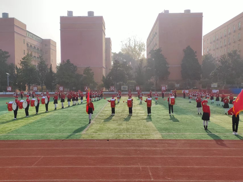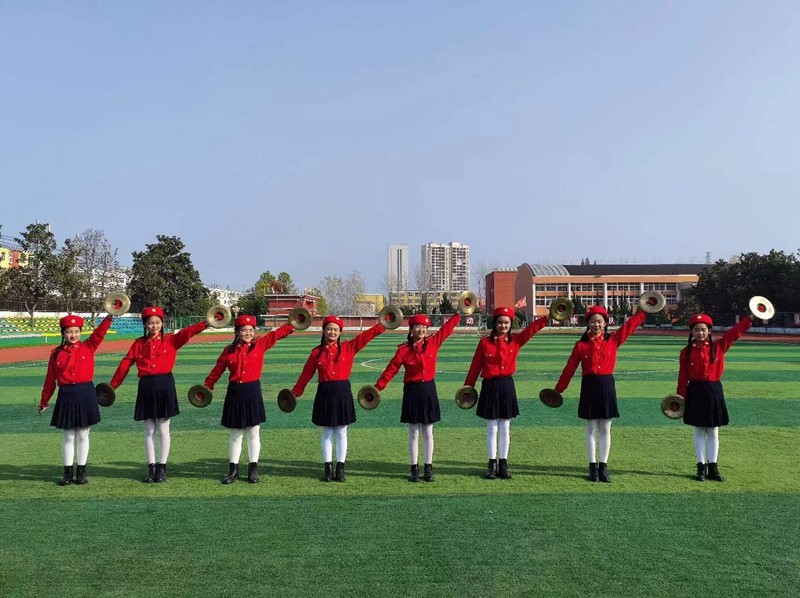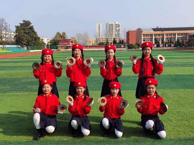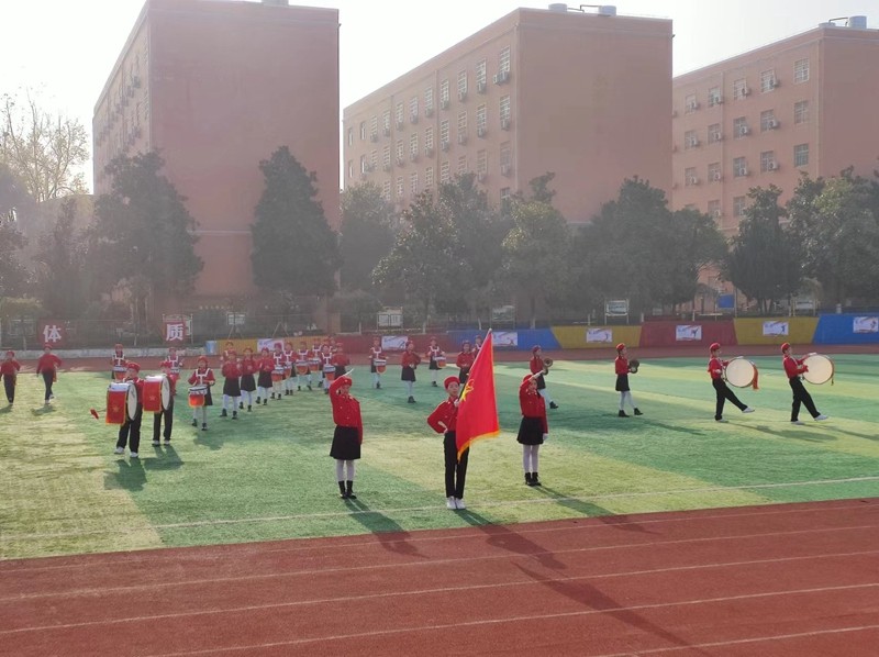 行知小学鼓号队由65名少先队员组成。比赛开始后,鼓号队员们迈着矫健的步伐,喊着嘹亮的口号,奏响震天的鼓乐,把赛场变成了自己展演的舞台,用流畅的队形,整齐的动作,悦耳的旋律,展示自己的实力,他们朝气蓬勃、奋发向上的精神风貌,绘成了一幅铮铮少年向党和国家送上自己心中美好祝福的画卷。