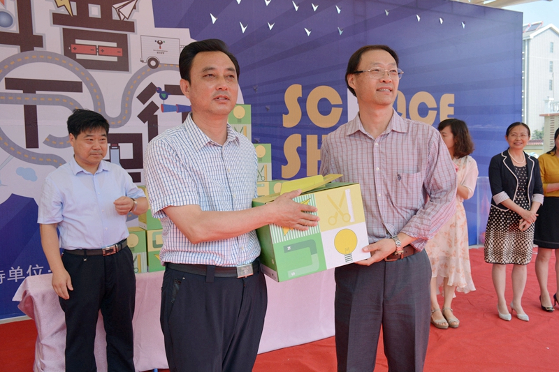 6月7日上午,“科普万里行”在潢川县黄湖农场的黄湖小学举行。展演前,北京索尼探梦科技馆向黄湖小学进行了科学实验包捐赠。索尼探梦科技馆张维馆长、县科协党组书记、主席涂艾黎、黄湖小学校长关大河等出席本次活动并作了重要讲话。
